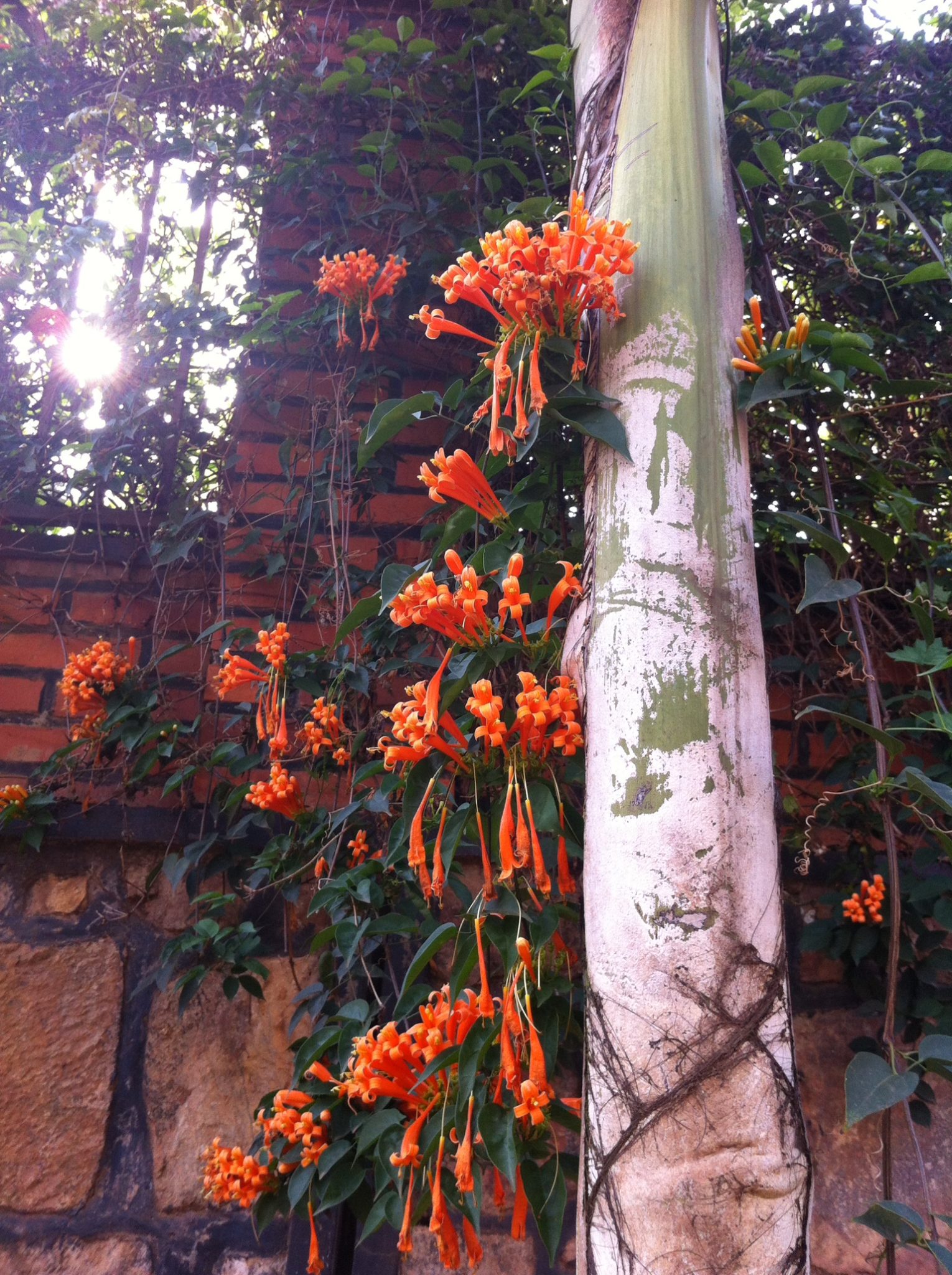 Rwanda is amazing. It rains every other day, mostly the sun beams on the papaya and jacaranda trees. We have power outages many days sometimes for an hour but usually shorter. Birdsong loudly blooms overhead or whenever a clutch of trees clings to the hillside. Flowers bloom all year round‚ lavender, red, yellow and magenta.